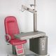 Refraction unit with either sliding or V shaped table with fixed height for two instruments, with electromagnetic locking of table arm, with chair with electric height adjustment. Available both in right and in optional left handed versions.