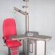 Refraction unit with electric height adjustable rotating table for two instruments, with manual rotation and with electromagnetic locking of both table and table arm in all positions, with chair with electric height adjustment. Available both in right and in optional left handed versions.